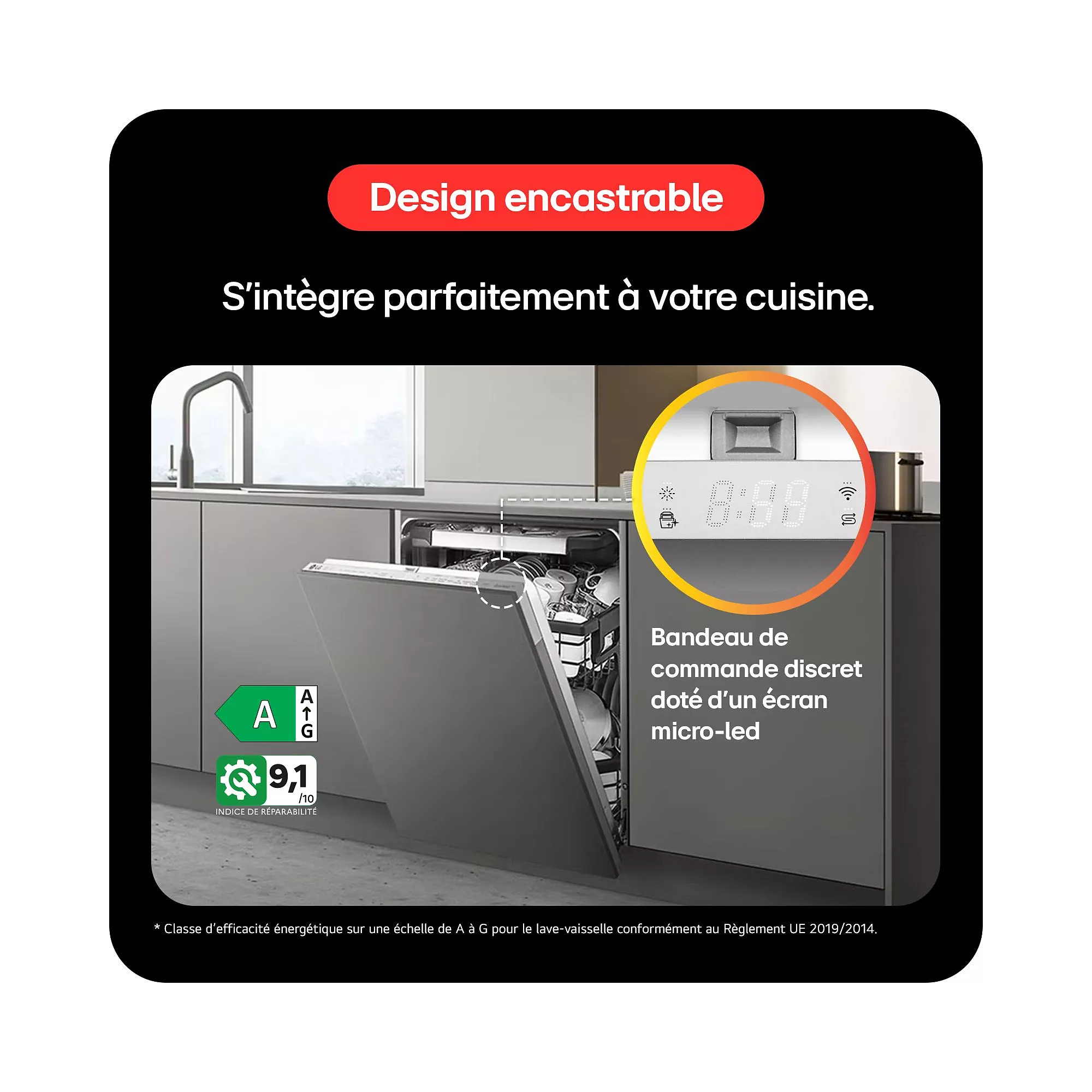 • Type : Lave-vaisselle encastrable, capacité 14 couverts.