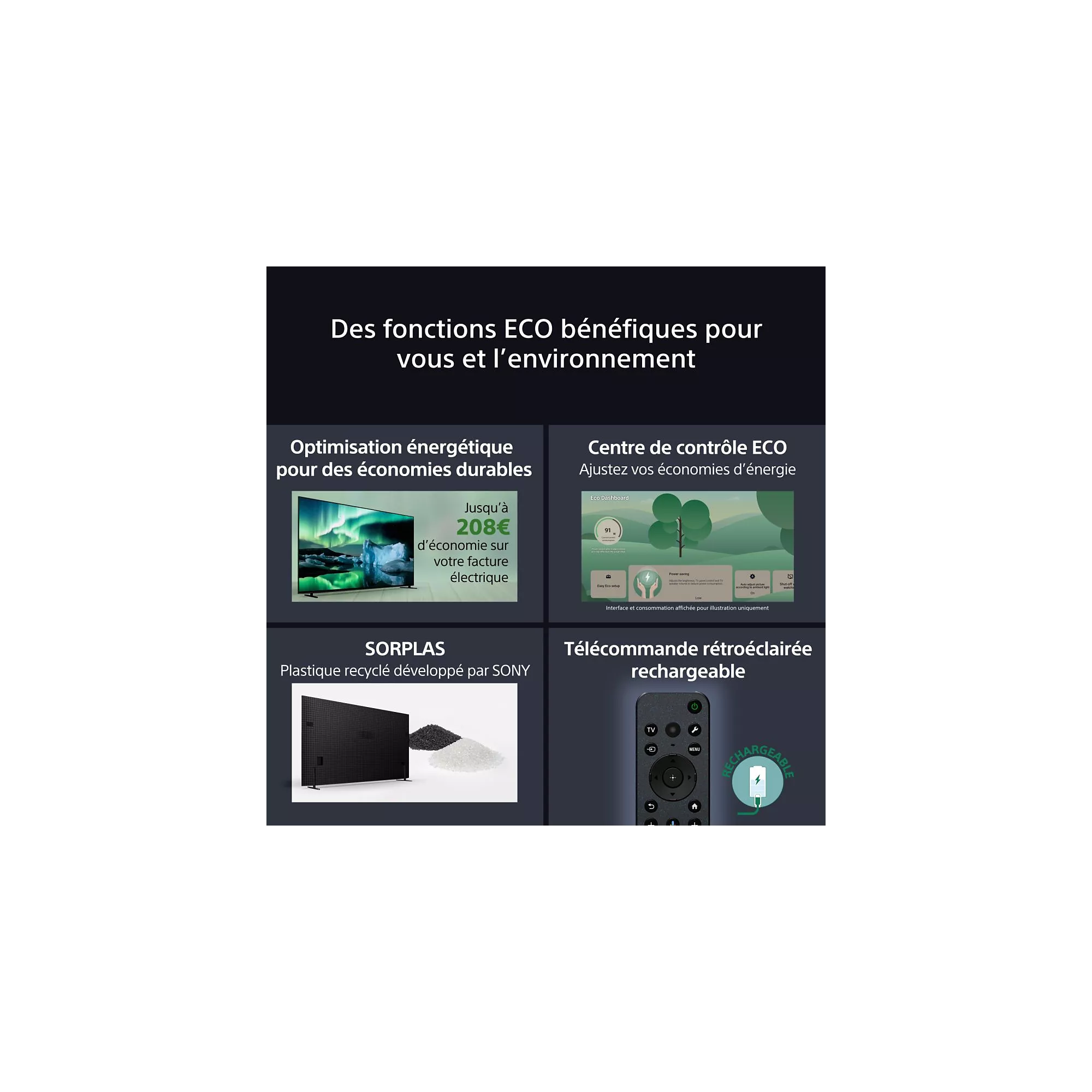 • Dalle OLED : pour des noirs profonds, un contraste élevé et une qualité d’image premium.