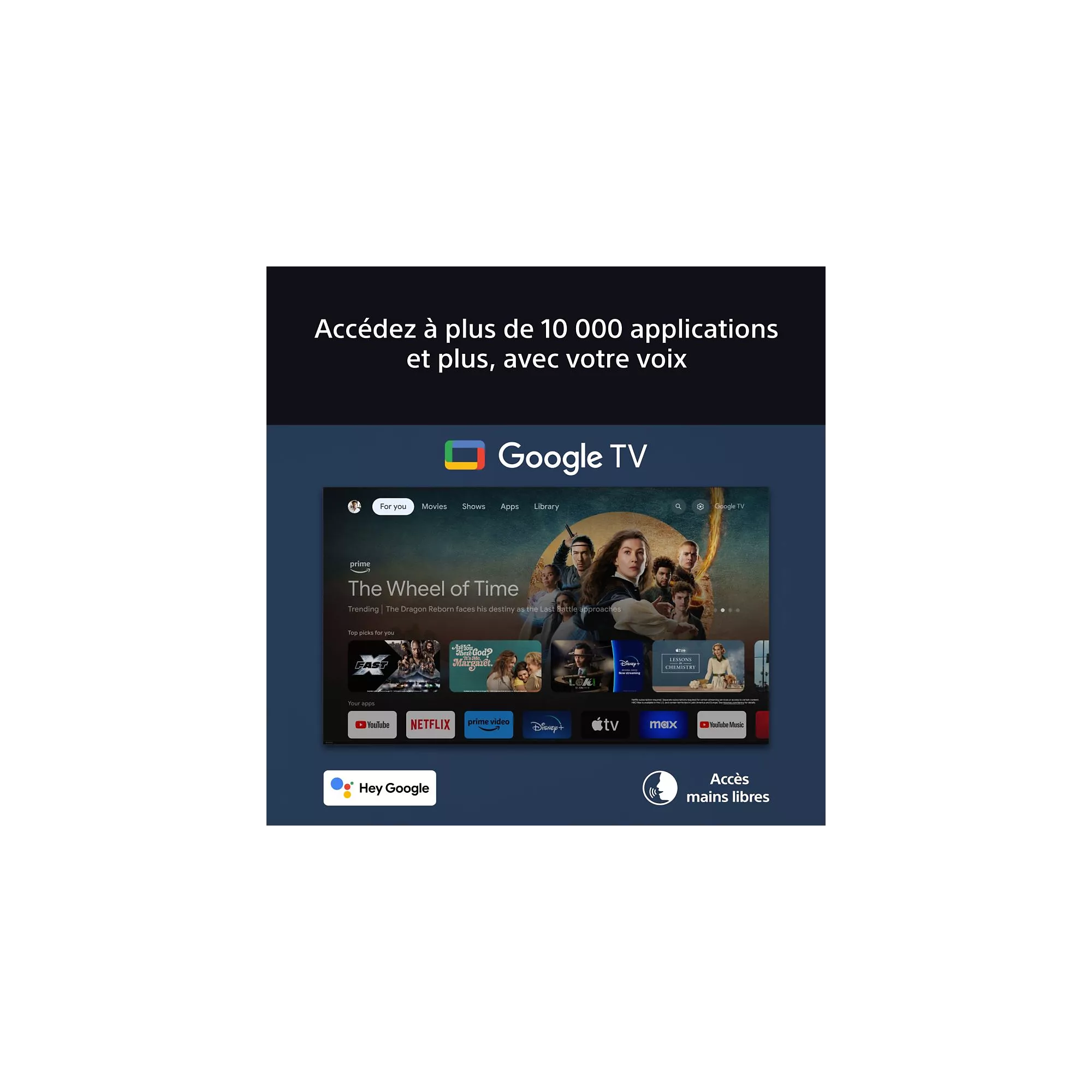 • Smart TV Google TV : accès facile aux applications, contenus et services.